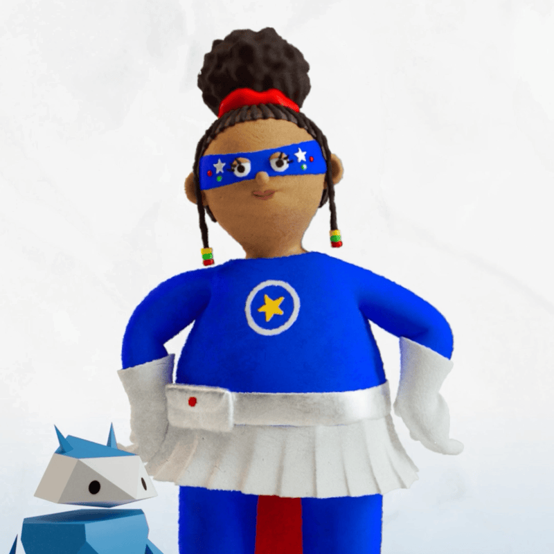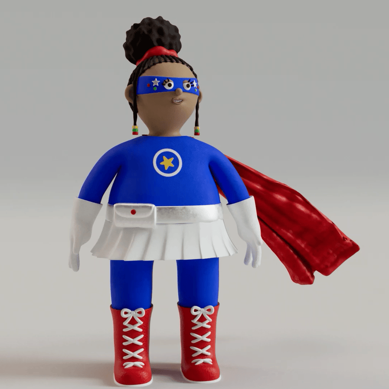 The client agreed to land somewhere in the middle between the static poses and full Pixar-style animation, which gave me an excuse to learn more 3D animation. I was really fortunate to receive a fully rigged character from the original 3D illustrator. The original image that was created for Highlights Magazine featured some imperfections and thumbprint textures that showed Superhero Girl as a clay figure rather than a clean 3D render. I decided to try to replicate this by using similar textures and roughening up the animation to create a faux-claymation feel to it. This was meant to serve a two-fold purpose - to emulate the style of the magazine cover and to mask my 3D animation limitations.